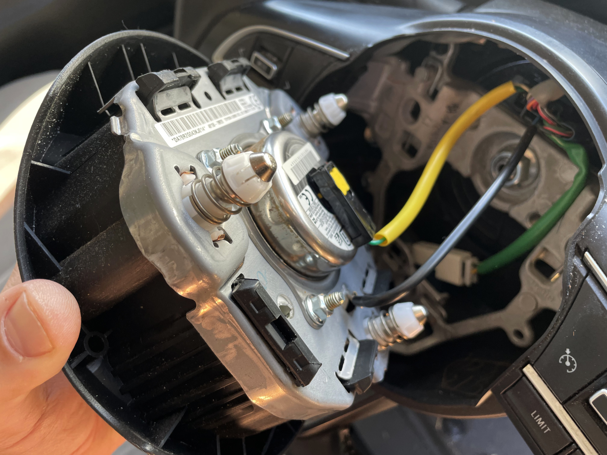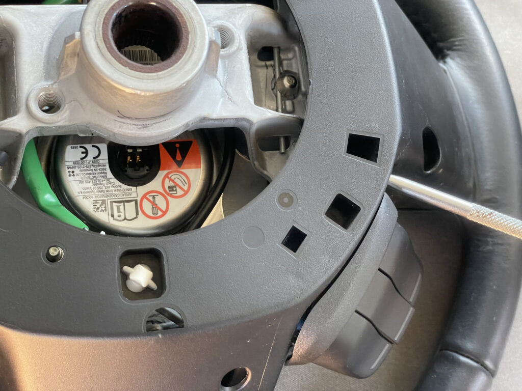 Make sure you have released all 3 clips before you try to lift the airbag away though, when it is fully released it will come away very easily. At this point you have access to do the steps to actually remove the steering wheel.